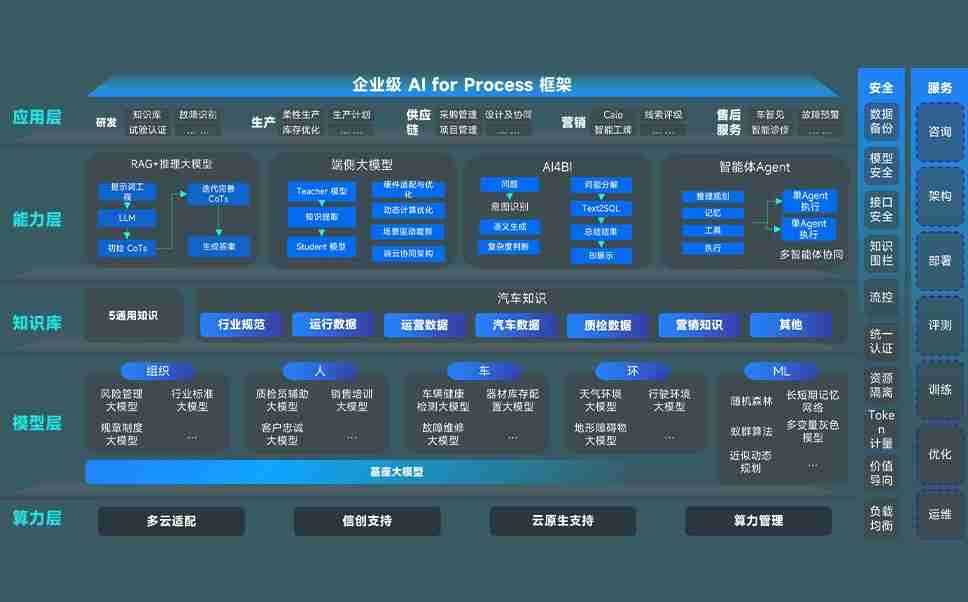 AG尊龙凯时问学智车解决方案是一套基于AI技术的汽车行业智能化系统,,,,覆盖从底层算力到顶层AI应用的全栈方案。。。。方案由算力层、、模型层和应用层组成:算力层,,,,方案支持多种一体机配置,,具备云端灵活部署、、、、多云适配以及动态优化计算资源的能力;模型层,,AG尊龙凯时问学平台版提供了企业级AI应用一站式构建与管理平台,,,支持基于后训练强化技术的汽车企业专属模型的训练、、评测和运营;应用层,,AG尊龙凯时问学DeepSeek版提供包括超级员工、、智能招采、、智能营销、、、智能客服、、AI for BI等一系列解决方案,,可助力汽车行业实现数字化转型,,,,让管理更智能、、、、响应更敏捷。。。
